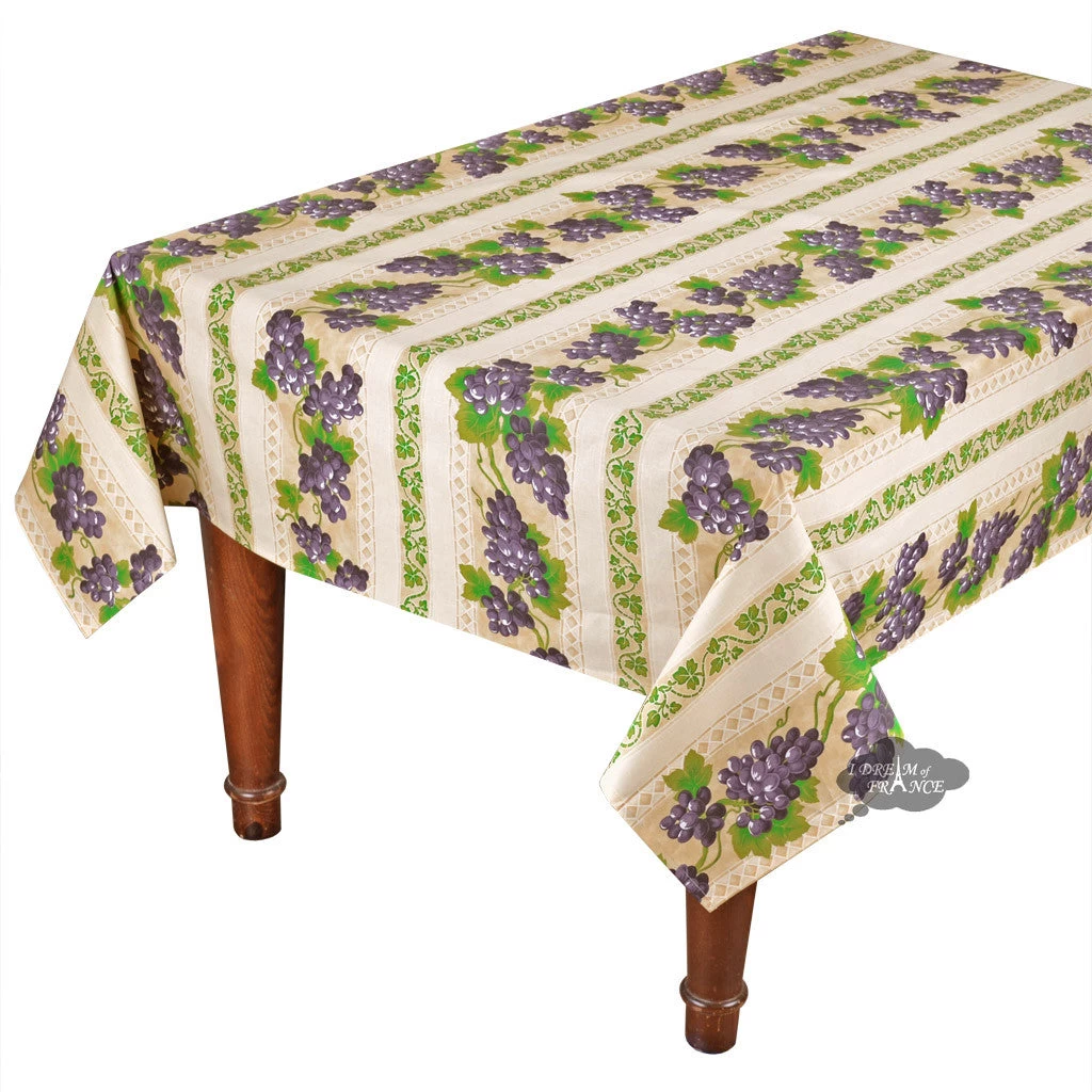 58″ Square Grapes Cream Acrylic-Coated Cotton Provence Tablecloth By Le Cluny