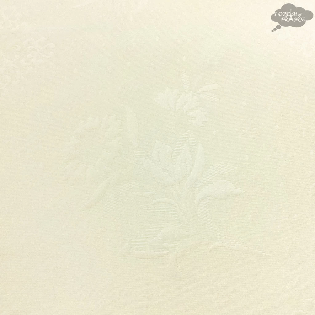 70″ Square Poppies Cream Acrylic-Coated Cotton Tablecloth By Tissus Toselli