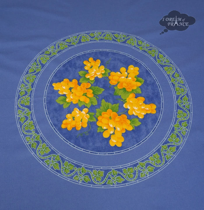 70″ Round Grapes Blue Acrylic-Coated Cotton Provence Tablecloth By Le Cluny