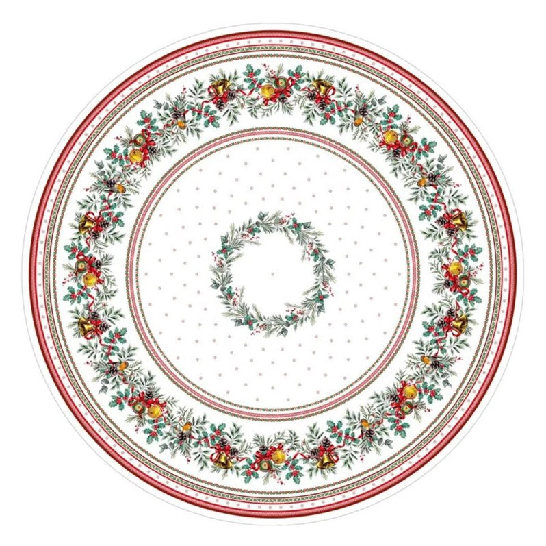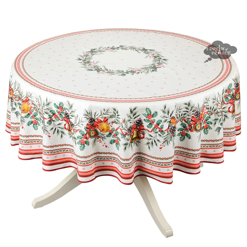70″ Round Joyeux Noel Tablecloth By Tissus Toselli