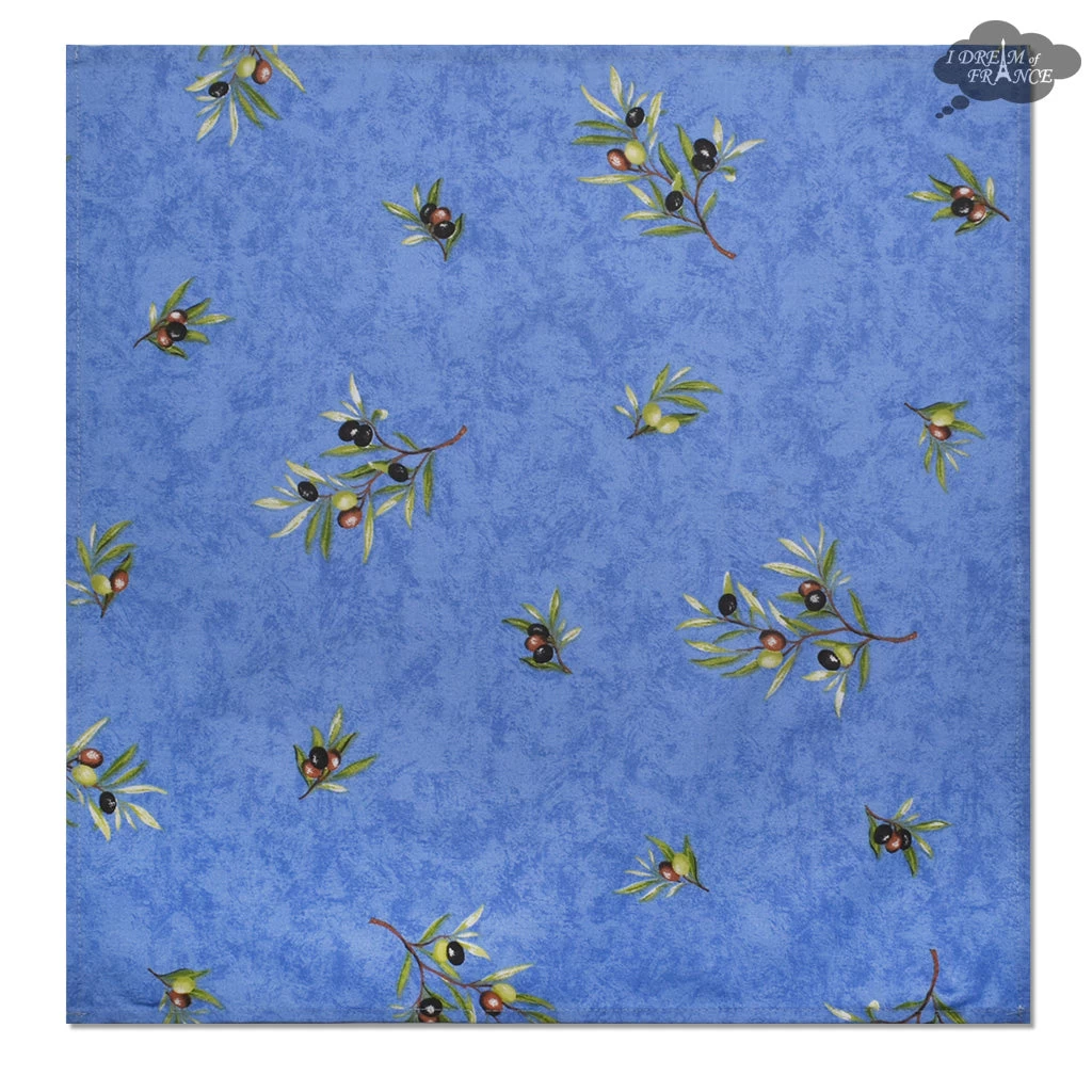 From Provence, these cotton napkins will complement our Clos des Oliviers blueline or just look great on their own. It features olives brancheson a blue background in an all-over pattern. They are 100% cotton.Napkins are NOT coated. These napkins measure 18″ across. Sold individually. Made in France. Can be labeled as “L’Ensoleillade” or “Label France”.