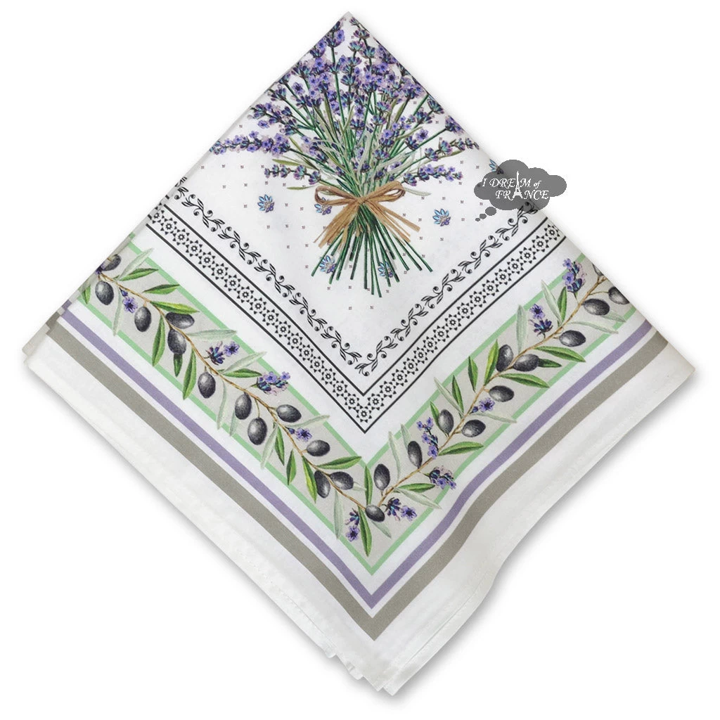 59″ Square Clos Des Oliviers Green Acrylic-Coated Cotton Tablecloth By L’Ensoleillade