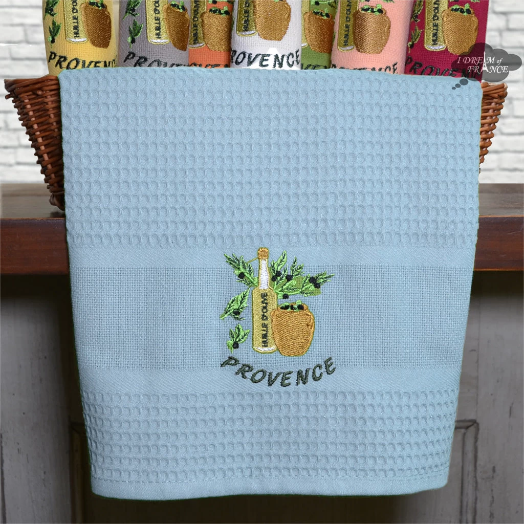 Olive Oil Light Blue Waffle-Weave Kitchen Towel By Coton Blanc