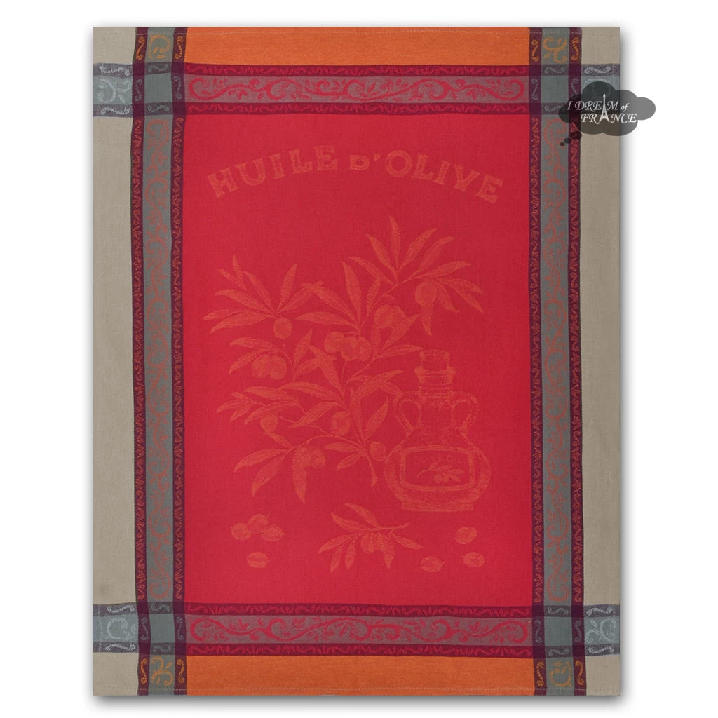 This Olive red Jacquard Dish Towel will add a rich French touch to your kitchen. It is made of the same jacquard fabric as our Olive red line of table linens.