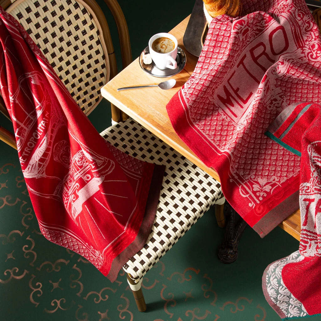 The Mtropolitainjacquard dish towel fromCouckewill brighten your kitchen and your day. Thisred towel measures 20″ x 30″ and features a detailed illustration woven into the towel of an iconic Parisian Art Nouveau metro station entrance. Beautiful and soft, this towel will serve you well.