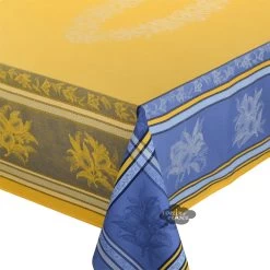 62″ Square Citrus Yellow & Blue French Jacquard Tablecloth By L’Ensoleillade