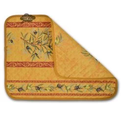 From Tissus Toselli, this quilted oven mitt featurespoppies on a yellow background and coordinates with our line of Poppies Yellowtable linens. Due to differences in the placement of the design on the oven mitt, each oven mitt is unique in appearance.