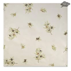 59″ Square Clos Des Oliviers Cream Acrylic-Coated Cotton Tablecloth By L’Ensoleillade
