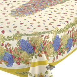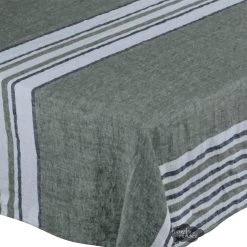 60×84″ Rectangular Olives Green Acrylic-Coated Cotton Provence Tablecloth By Le Cluny