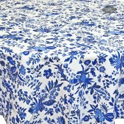 52×72″ Rectangular Versailles Blue Acrylic-Coated Cotton French Tablecloth By Le Cluny