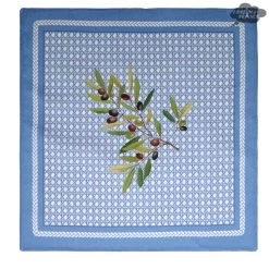 60″ Square Nyons Blue Acrylic-Coated Cotton Tablecloth By Tissus Toselli