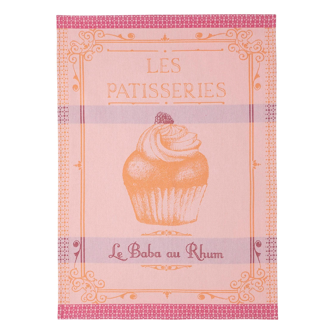 The Baba au Rhum(Rum Baba)jacquard dish towel from Coucke will brighten your kitchen and your day.This orange and pink towel measures 20″ x 30″ and features a detailed illustration woven into the towel of a Bab au Rhum, the delicious French pastry.Beautiful and soft, this towel will serve you well.