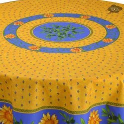 70″ Round Sunflower Blue Cotton Provence Tablecloths By Le Cluny